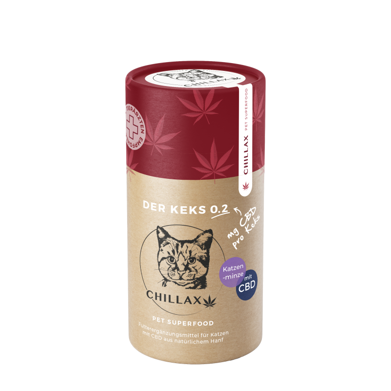 Ein langes, entspanntes und gesundes Katzenleben dank den Katzenminze-Keksen mit CBD von Chillax. Die Kekse fördern die Entspannung, die Mobilität und das Wohlbefinden.